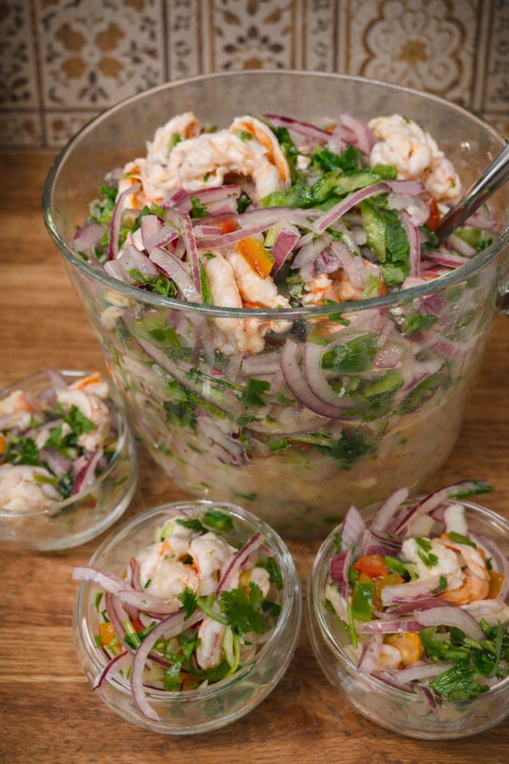 Freshly prepared shrimp ceviche inspired by Angelina’s kitchen — bright citrus, herbs, and care in every bite. Served cool and comforting, just the way it’s meant to be.