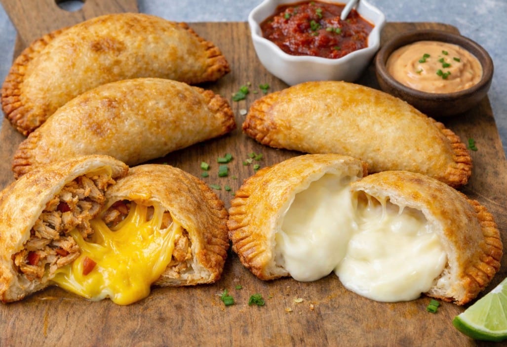 Golden hand-fried pastelillos made the way we grew up eating them. Filled with seasoned chicken, chicken with melted yellow cheese, or classic queso blanco, crispy on the outside, warm and comforting inside.